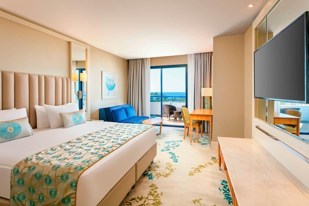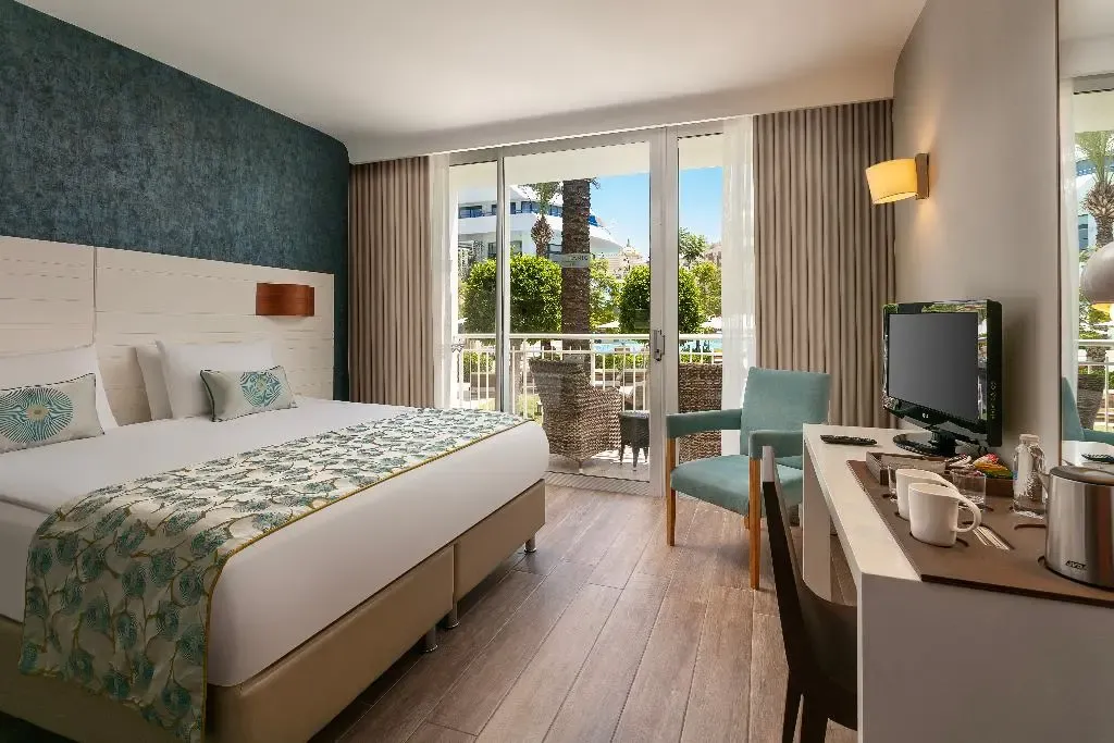 Klimatizované izby v modernom štýle majú všetko vybavenie, ktoré by ste očakávali, vrátane Wi-Fi pripojenia na internet, vlastnej kúpeľne a zariadeného balkóna alebo terasy. Možnosti izieb siahajú od štandardných a rodinných izieb až po junior a duplex suity. Hotel tiež kladie veľký dôraz na inkluzívnosť a ponúka zariadenia pre hostí so zdravotným postihnutím a všetky izby sú navrhnuté pre páry a rodiny. Tento hotel má celkom 586 priestranných a štýlových ubytovacích jednotiek, ktoré zahŕňajú štandardné izby s výhľadom na krajinu, štandardné Anex a rodinné izby Anex, ako aj suity Junior, Colonel a Admiral. Všetky štandardné izby s výhľadom na krajinu sú vybavené Wi-Fi pripojením na internet, klimatizáciou, kúpeľňou s vaňou, LCD TV so satelitným príjmom, telefónom, trezorom, sušičom vlasov, čajovým a kávovým setom a minibarom. Dvojúrovňové suity zahŕňajú jacuzzi na terase, bezbariérové sprchy a 2 kúpeľne (jedna na každom poschodí). K tomu kávovar Schiller na espresso a možno budete chcieť zvážiť upgrade...