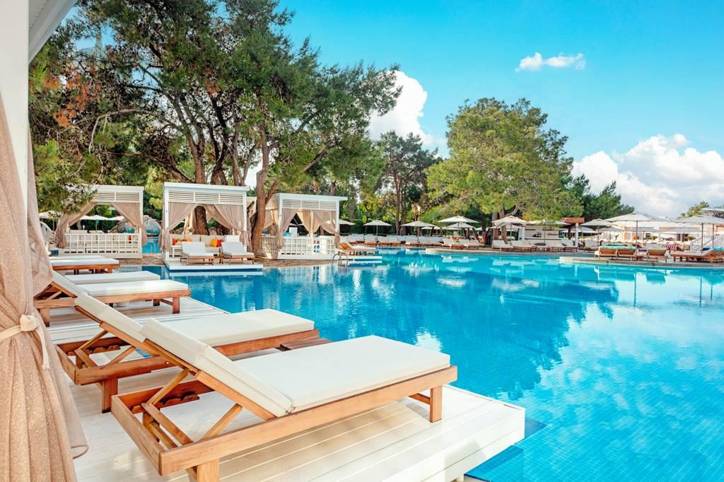 • vstupná hala s recepciou • hlavná reštaurácia • 4 a la carte reštaurácie (za poplatok) • bary • Wi-Fi v priestoroch hotela zdarma • internetový kútik (za poplatok) • disco • vnútorný bazén • fitnes • sauna • jacuzzi a turecké kúpele (zdarma) • masáže, služby wellness centra (za poplatok) • basketbal • volejbal • boccia • bowling (za poplatok) • biliard a herňa (za poplatok) • profesionálne futbalové ihrisko (za poplatok) • v areáli hotela 2 vonkajšie bazény • aquapark so šmýkačkami • 4 tenisové kurty • animácie počas dňa a večerné predstavenia • živá hudba