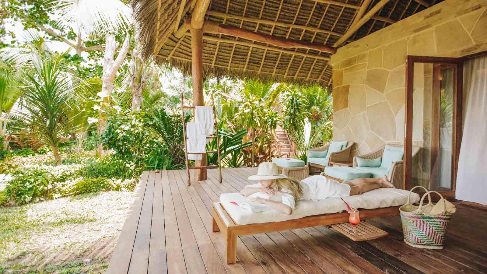 Podporuje sa aj relaxácia. Rezort má niekoľko palúb a terás s pohodlnými stoličkami a pohovkami a milovníci slnka môžu zamieriť k bazénu s mnohými ležadlami. Hlavný bazén v tvare mŕtveho ramena a druhý s toboganmi (nielen pre deti!), ktoré sú na Zanzibare jedinečné, poskytujú vítaný oddych od horúčav. Pláž je prílivová, ale hotel vytvoril vlastnú umelú pláž, ktorú je možné využiť pri prílive. Záhradami sa križujú chodníky, z ktorých môžete obdivovať niektoré z viac ako 400 druhov rastlín.