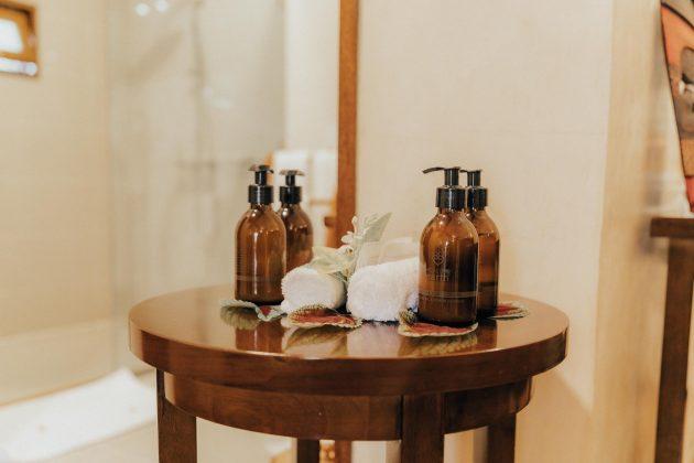 Štandardné vybavenie izieb zahŕňa klimatizáciu, moskytiéru, kávovar, minibar (denne dopĺňaný), sušič vlasov, toaletné potreby, župan a papuče, trezor, baterku, TV, rádio, Wi-Fi, plážovú tašku a osušky. Vonku sú stoličky, hojdacia sieť a ležadlá. K dispozícii je izbová služba.