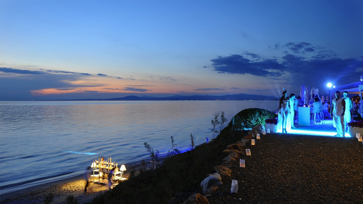 Sea You Beach – pláž neďaleko Porto Sani, ideálna na vychutnanie si nádherného výhľadu na západ slnka. Nájdete tu aj Sea You Bar.