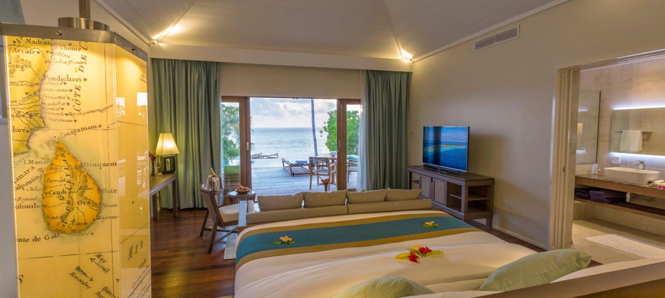 Táto vila pri oceáne vám umožní vychutnať si romantické večery v úplnom súkromí. S vaňou na terase je ideálnym miestom na sledovanie maldivského západu slnka a otvoreného výhľadu na Indický oceán. Táto vila s ekologickým vybavením a posteľou veľkosti king je ideálna pre svadobné páry. K dispozícii je klimatizácia, stropný ventilátor, osobný trezor, posedenie, drevená podlaha, skrine, toaletný stolík, pracovný priestor s nabíjacími stanicami a súkromná slnečná terasa s ležadlami, stolom a stoličkami.