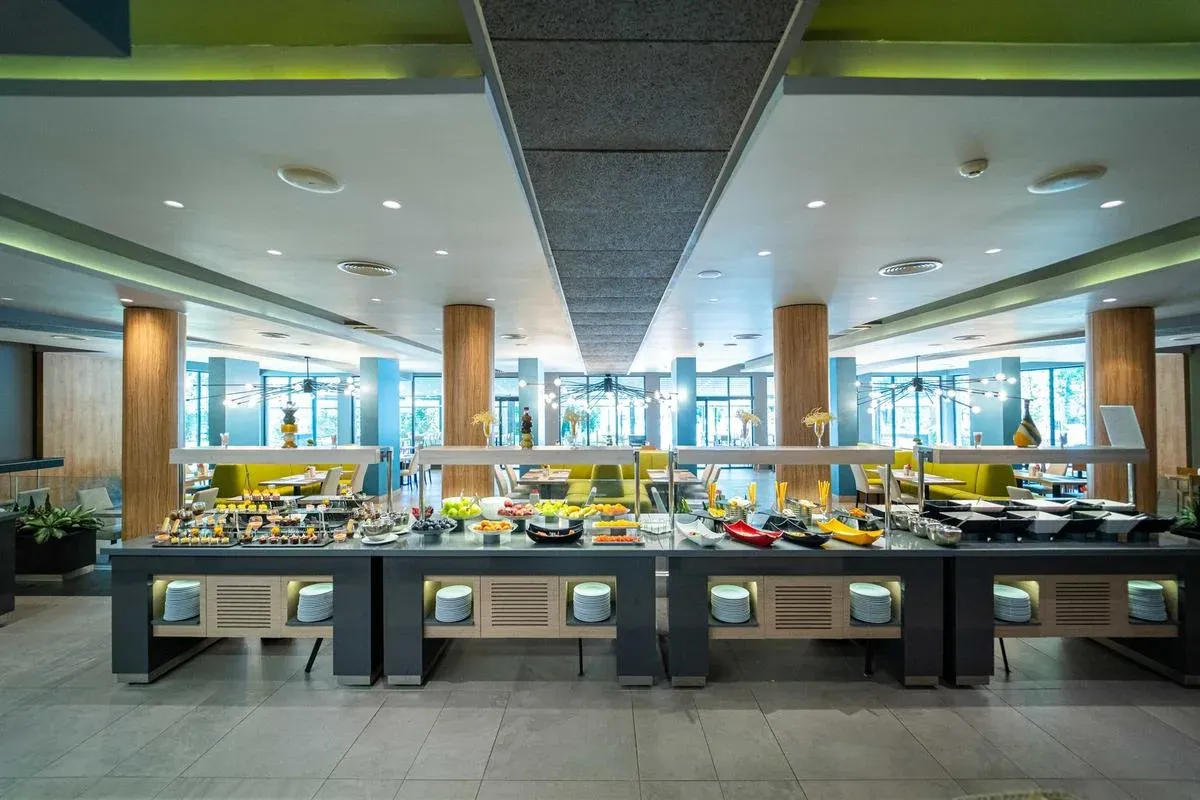 Hlavná bufetová reštaurácia je priestranná jedáleň naplnená až po okraj miestnymi a medzinárodnými jedlami a 5 nocí v týždni sa tu koná tematický večer od bulharských špecialít po ázijské jedlá.