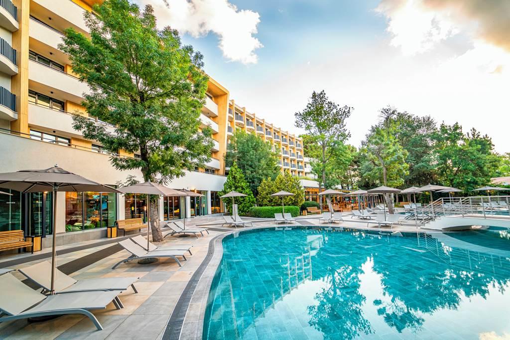 Grand Hotel Sunny Beach – plážová kráska na Slnečnom pobreží s vonkajším bazénom, do ktorého sa môžete ponoriť, detským kútikom, bufetovou reštauráciou a írskou krčmou, aby ste si udržali dobré časy