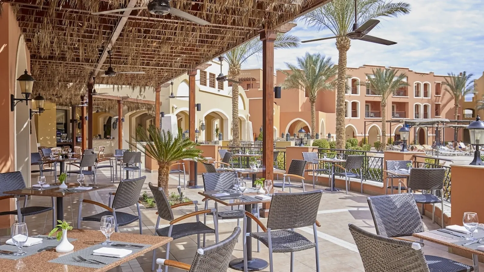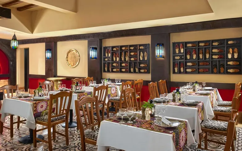 Zahryznite sa v reštaurácii El Khan, jednej z mnohých reštaurácií v rezorte, ktorá zahŕňa 5 reštaurácií a kaviareň/bar. Oddýchnite si pri osviežujúcom nápoji v plážovom bare, bare pri bazéne alebo v jednom zo 4 barov/salónikov. Pre hostí all inclusive je v hlavnej reštaurácii El Kahn pripravený sviatok troch bufetových stolov denne, spolu s občerstvením a osviežujúcimi nápojmi, ktoré sú k dispozícii v reštaurácii The Food Court. Prípadne si môžete rezervovať výber z dvoch à la carte reštaurácií: Nino's pre taliansku kuchyňu alebo Sofra pre orientálne jedlá.