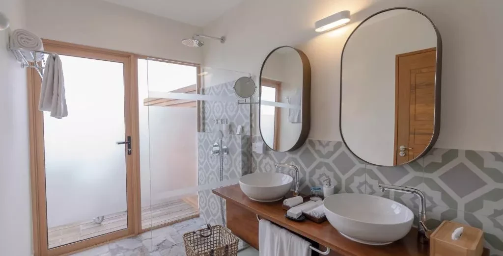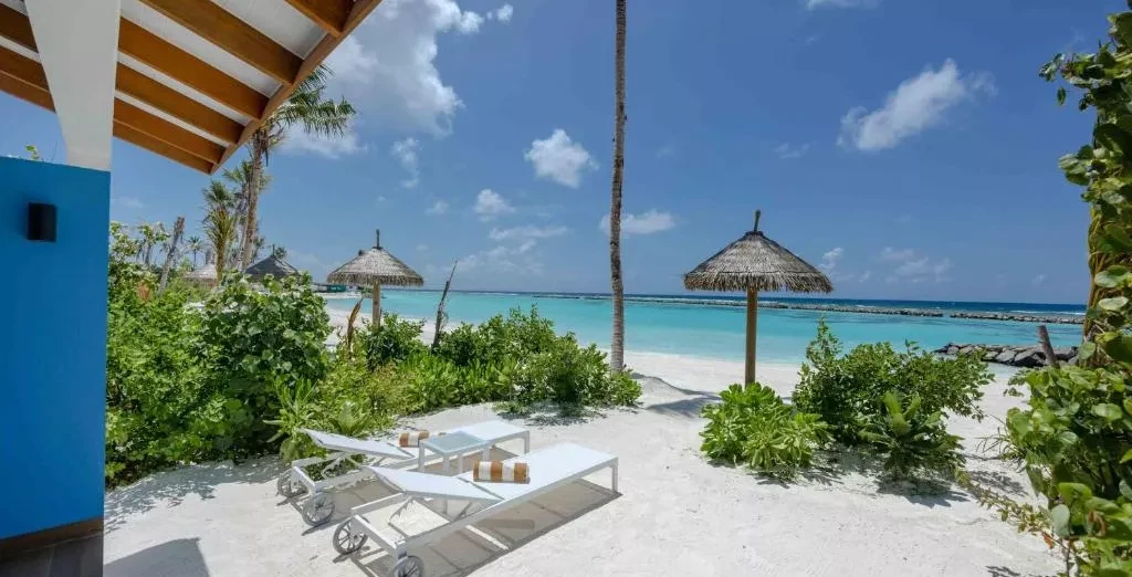 Vstupná izba rezortu má rozlohu 50 metrov štvorcových a nachádza sa na východnej strane ostrova s ​​úžasným výhľadom na východ slnka. Každá vila má typickú maldivskú kúpeľňu pod holým nebom pre autentický zážitok. Plážové vily majú kapacitu 2 dospelých a 1 dieťa/3 dospelých.