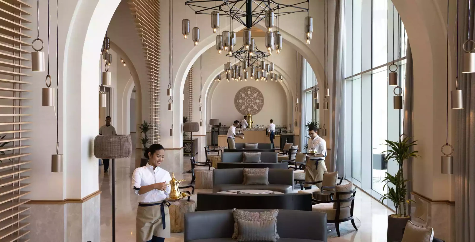 Dizajn rezortu spája modernú eleganciu s tradičnými arabskými prvkami a vytvára pokojnú a sofistikovanú atmosféru. Hostia si môžu dopriať rôzne kulinárske zážitky v reštauráciách rezortu, ktoré ponúkajú širokú škálu medzinárodných a miestnych kuchýň.