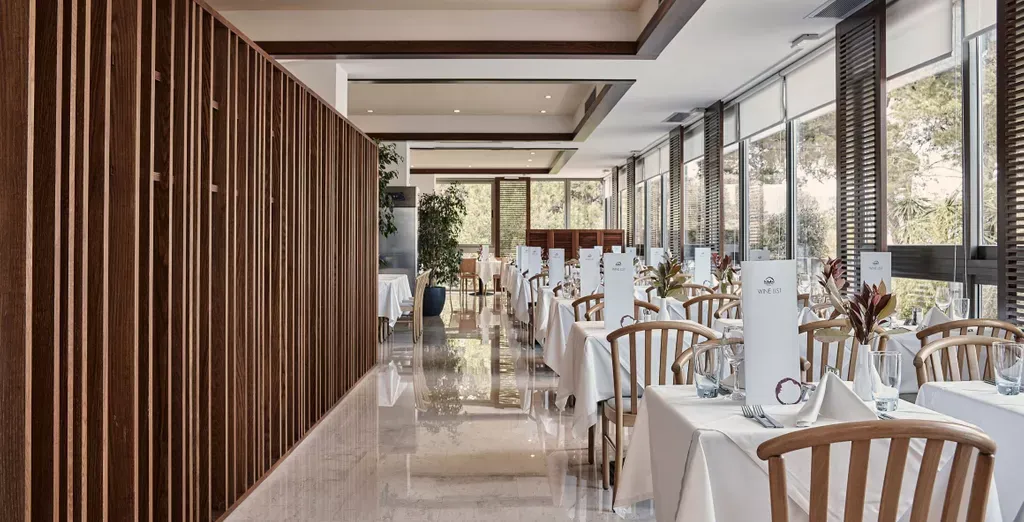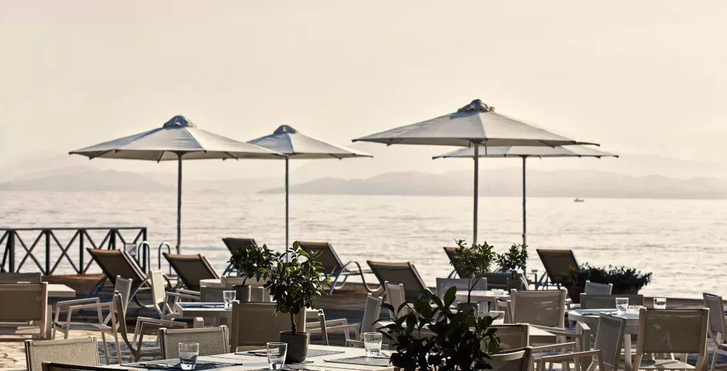 Grécke raňajky sa podávajú formou bufetu, zatiaľ čo reštaurácia Horizon ponúka na večeru stredomorský bufet. Čerstvé morské plody a cestoviny si môžete vychutnať v plážovej reštaurácii a gyros ponúka Taverna. Upozorňujeme, že počas večere sa v reštauráciách vyžaduje neformálne elegantné oblečenie. Plážový bar ponúka osviežujúce nápoje a ľahké občerstvenie a lobby bar zaujme svojou ponukou kávových zmesí počas dňa, ako aj výberom aperitívov a večernou pravidelnou živou hudbou.