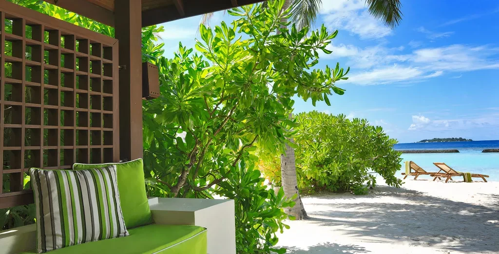 Meeru Island Resort & Spa Predstavte si to: biele piesočnaté pláže, sladkovodné bazény pre vás aj pre najmenších, lahodné jedlá od tematických bufetov až po ázijské špeciality a dokonca aj driving range priamo na mieste, ak si chcete precvičiť švih – určite využite aj golfový vozík po rezorte.
