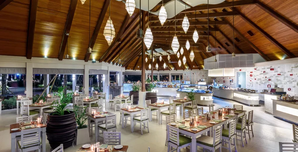 Vihamanaa: Pre hostí, ktorí sa rozhodnú pre plnú penziu, sa väčšina jedál podáva predovšetkým v hlavnej reštaurácii s názvom Vihamanaa. Toto je hlavná jedáleň rezortu na raňajky, obedy a večere. Raňajky sú zvyčajne medzikontinentálne a nemenia sa zo dňa na deň, ale ostatné jedlá áno. Jedlo je vynikajúce a bufetové jedlá sa líšia, okrem raňajok. Tu si môžete vychutnať medzinárodné špeciality s maldivským nádychom a zároveň oceniť očarujúci dizajn.