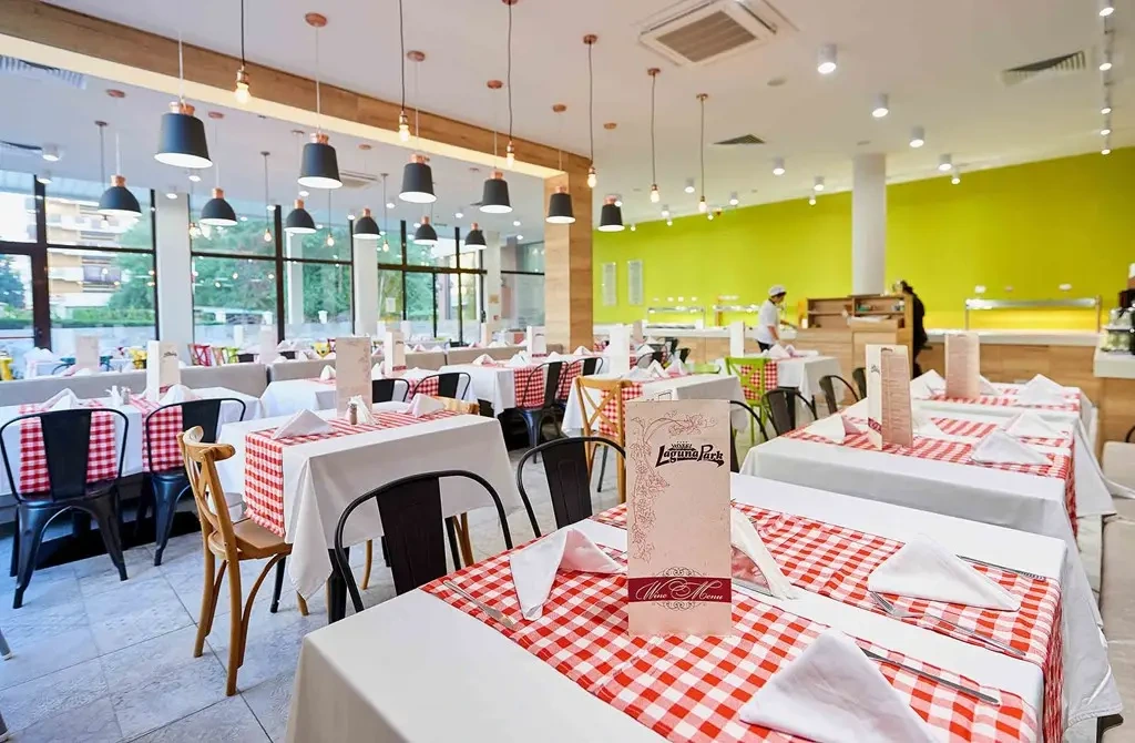 Rozmanité menu s možnosťami pre celú rodinu je prioritou v hoteli Laguna Park. Vychutnajte si lahodné jedlá v hlavnej reštaurácii, obklopenej jemným osvetlením, zeleňou a úžasným výhľadom. Reštaurácia s občerstvením je obľúbená u detí aj dospelých, ktorí milujú trochu povzbudenia – nájdete tu pizze, hotdogy, zmrzlinu a ďalšie. V okolí sú roztrúsené bary, kde si môžete dať drink, osviežiť sa a potom sa vydať smerom k amfiteátru na večernú zábavu.