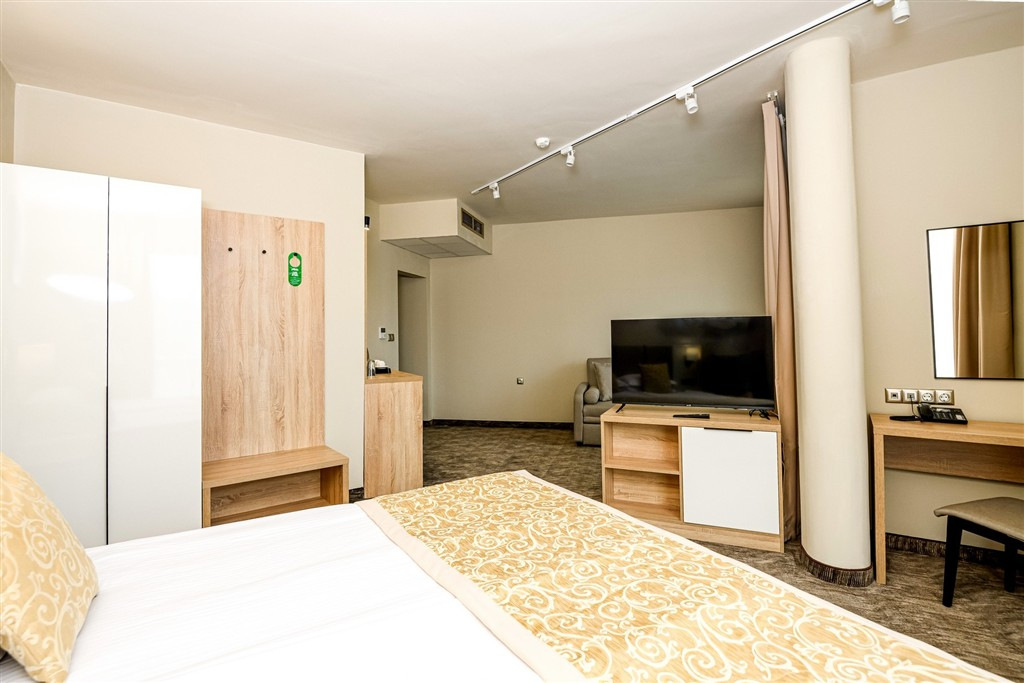 Dvojlôžková izba: kúpeľňa/WC (sušič vlasov), centrálne ovládaná klimatizácia, minibar (zdarma naplnený pri príchode), set na prípravu čaju a kávy, telefón, trezor, TV/sat., balkón