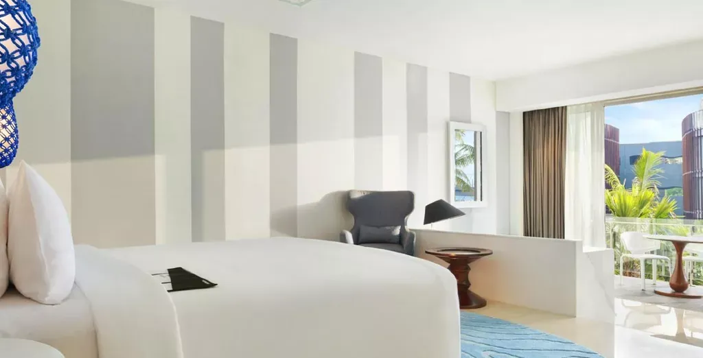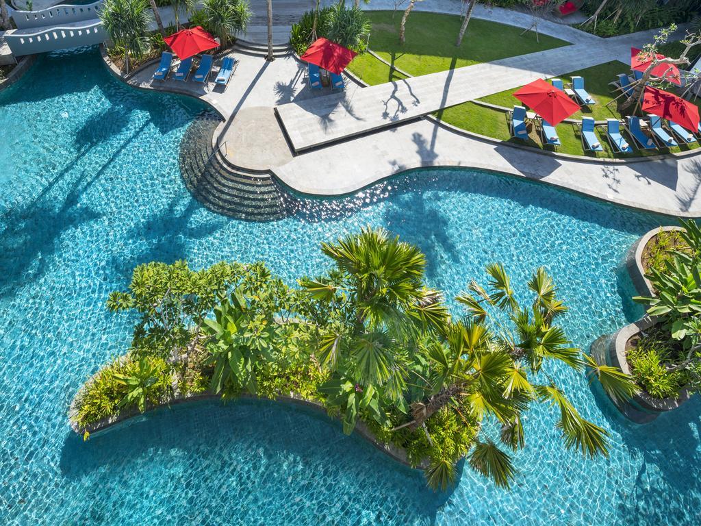 Oddýchnite si v moderných izbách vyžarujúcich balijské prvky a užite si zariadenia, ako je lagúna so slanou vodou s rozlohou 1 300 m² a kúpele a salón Serenity. Nezabudnuteľný zážitok vás tu čaká v jednom z najexotickejších plážových hotelov Jimbaran, kde kľúče odomykajú viac ako len dvere.
