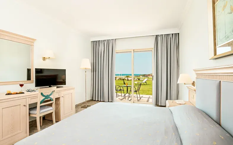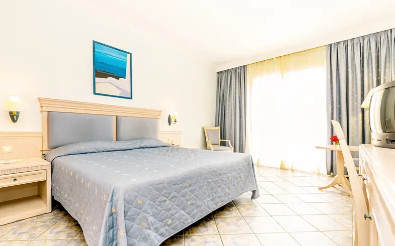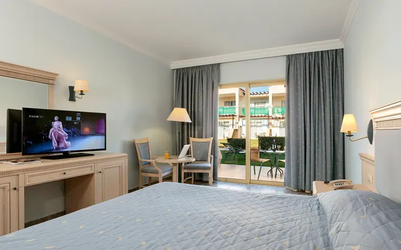 V ponuke je široký výber štýlovo zariadených izieb a apartmánov. Izby sa nachádzajú buď v hlavnom hoteli alebo v dvojpodlažných bungalovových blokoch rozmiestnených po celom areáli. Všetky sú vybavené manželskou posteľou alebo oddelenými posteľami a prístelkou alebo detskou postieľkou, klimatizáciou, TV, trezorom, sušičom vlasov, kúpeľňou a balkónom alebo terasou. Za príplatok sú k dispozícii aj: Rodinné izby (max. traja dospelí alebo dvaja dospelí a až dve deti) sú všetky umiestnené v blokoch bungalovov a majú manželskú posteľ alebo oddelené lôžka a dve samostatné rozkladacie pohovky oddelené posuvnými dverami. Izby s výhľadom na more. Izby pri pláži. Rodinné izby na prízemí. Rodinné izby na pláži s výhľadom na more. Rodinné izby Superior na pláži s výhľadom na more. Jednolôžkové izby. K všeobecnému vybaveniu patrí klimatizácia, ZADARMO Wi-Fi, TV so satelitným príjmom, sušič vlasov, telefón (za príplatok), uzamykateľná skrinka, minibar (každý druhý deň dopĺňaný nealkoholickými nápojmi, pivom a vodou) a balkón alebo terasa.
