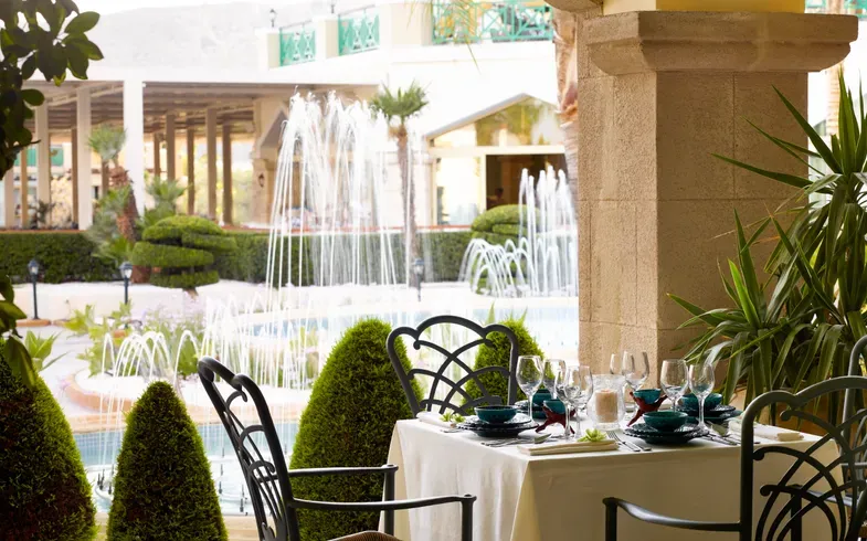 Priamo na mieste je k dispozícii množstvo reštaurácií, aby boli vaše chuťové poháriky spokojné počas celého pobytu. Hlavná reštaurácia Spondi je miestom, kde nájdete vynikajúce raňajky formou bufetu v americkom štýle s bohatými obedmi a večerami formou bufetu v gréckom a medzinárodnom štýle. Ak si chcete rýchlo zahryznúť na pobreží alebo na večeru pri grilovaní, môžete sa zastaviť v Aeolos Beach Restaurant & Bar a na niečo zhovievavejšie sú na mieste dve reštaurácie à la carte, ako napríklad Thalassa Seafood Restaurant a L'osteria Restaurant. Talianske a grécke jedlá. Nápoje sú k dispozícii v hlavnom bare Dionysos, ktorý ponúka to najlepšie miestne víno, alebo v bare pri bazéne na denné občerstvenie v centre diania.