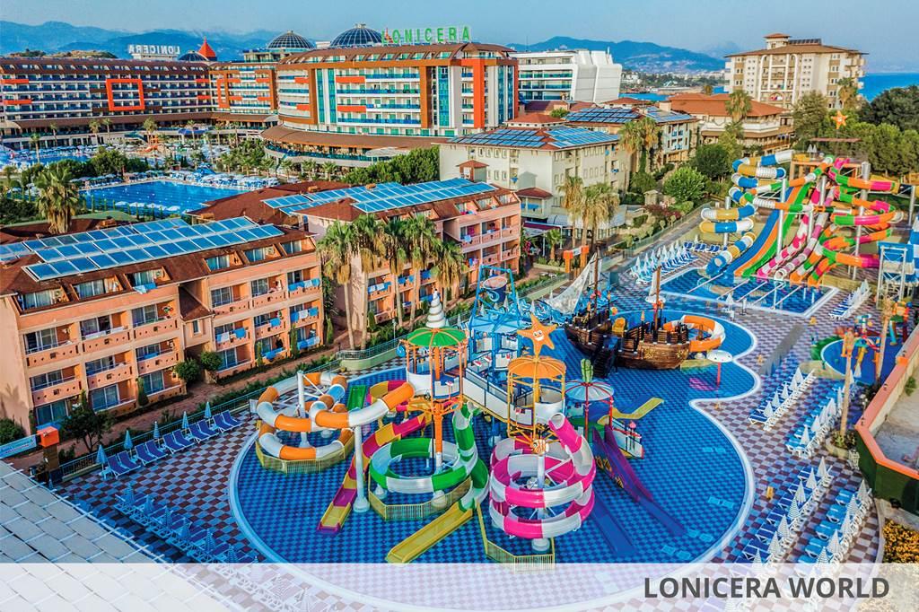Štýlový a nápadný hotel Lonicera Premium sa môže pochváliť skvelou polohou na pláži priamo pri úžasnej piesočnatej zátoke, ktorá ponúka jemné krištáľovo čisté vody na dosah ruky, ideálne na pádlovanie a opaľovanie. Moderné izby, moderné kúpeľné zariadenia a balík Ultra All Inclusive sú navrhnuté tak, aby zabezpečili relaxačný pobyt. Priamo na mieste sa nachádza aj vodný park a tobogany a budete mať tiež prístup do úžasného aquaparku v Lonicera World, ktorý sa nachádza hneď vedľa, čo znamená nekonečnú zábavu pre celú rodinu!