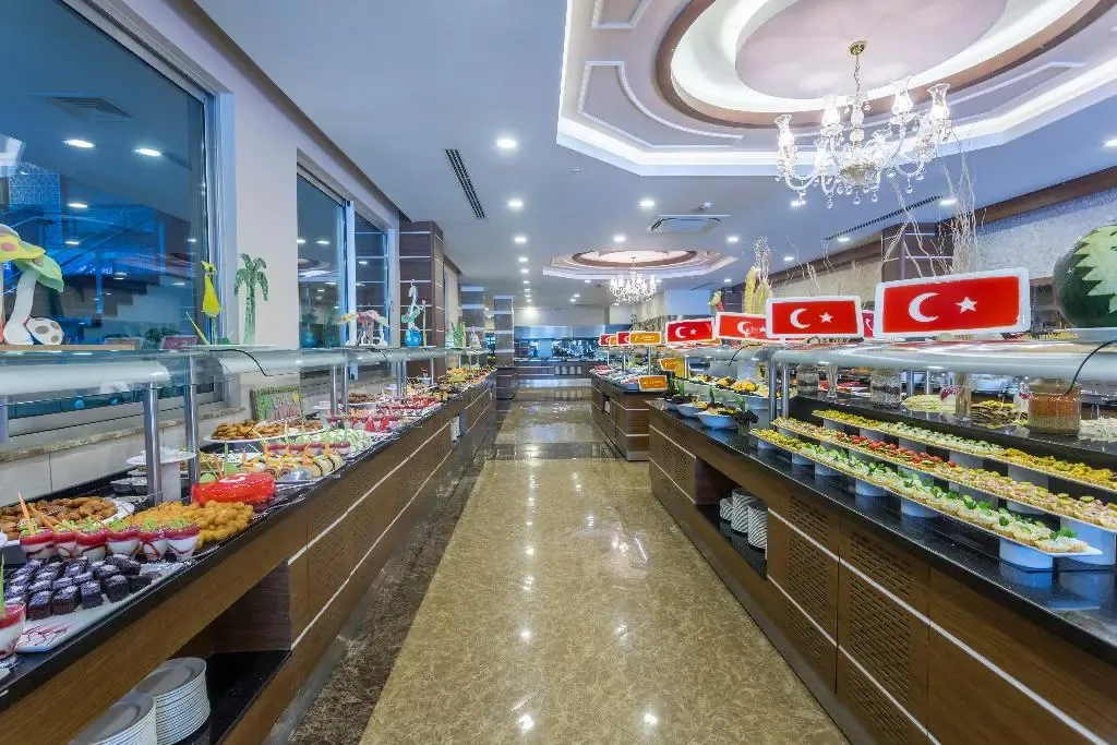 Raňajky, obedy a večere sa denne podávajú formou bufetu. Hostia si môžu pochutnať na vybraných jedlách v hotelovej reštaurácii s morskými plodmi, talianskej a tureckej à la carté reštaurácii, rýchlom občerstvení v určitých časoch denne, cukrárni a ovocnom bare počas dňa. Bar na mieste je ideálny na ochutnávku rôznych nápojov.