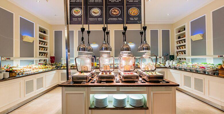 Hostia môžu očakávať neuveriteľné kulinárske špeciality od skúsených majstrov kuchárov vo viacerých hotelových reštauráciách. A’la carte Komur Ocakbasi bude vaším cieľom, ak si chcete vychutnať lahodné jedlá z rýb a steakov s veľkým výberom vín. Reštaurácia Spice má jedinečnú výzdobu s plne viditeľnou kuchyňou, kde sa podávajú raňajky formou bufetu a večere. Plážová reštaurácia, ktorá sa nachádza na pobreží, ponúka vynikajúce občerstvenie, občerstvenie a zmrzlinu. K dispozícii je aj kaviareň Park West, ktorá je nielen ideálna na popoludňajšie posedenie pri chutnom pečive a teplých nápojoch, ale ponúka aj skvelé a’la carte menu. V neposlednom rade strešný Sky Bar ponúka kompletné a la carte menu podávané s úchvatným výhľadom na Kyrénu a Stredozemné more.