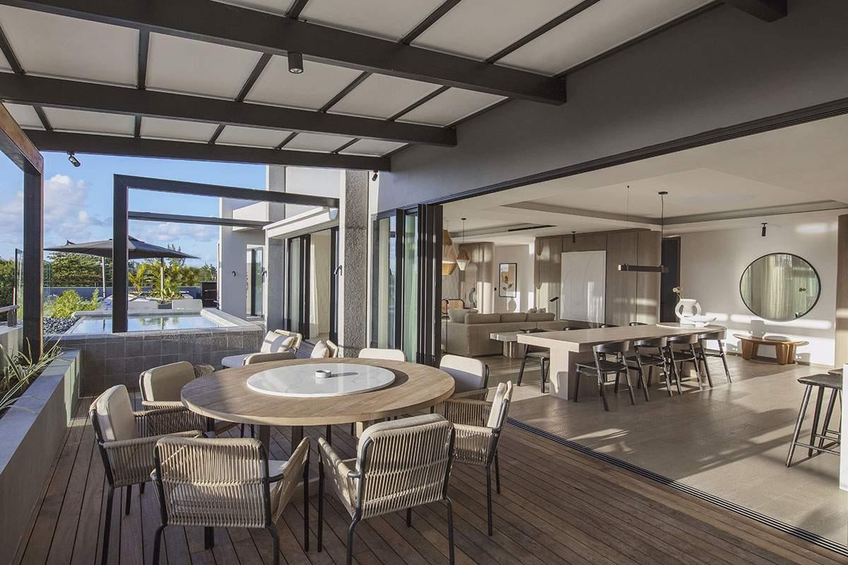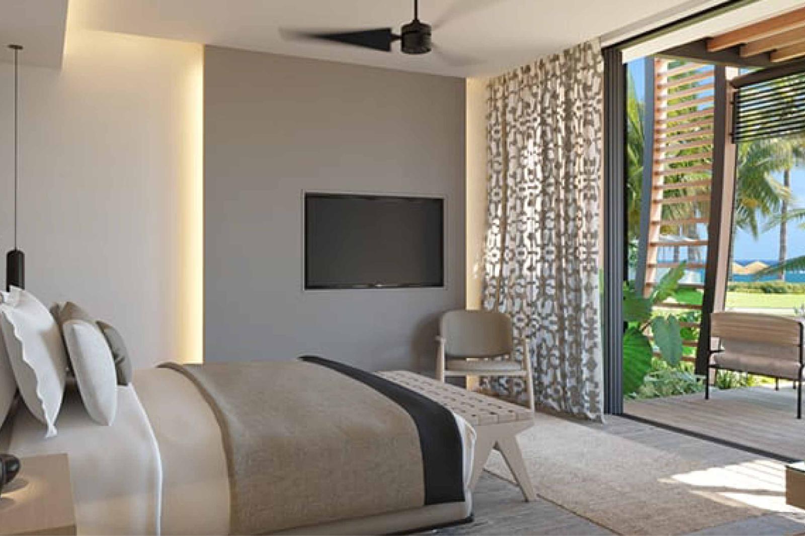 2-spálňové vily s bazénom majú vlastný bazén, prepychovú terasu a vonkajší jedálenský priestor s grilom, aby vytvorili luxusný domov z domova s interiérmi Kelly Hoppen v tlmených neutrálnych odtieňoch. Strešné apartmány s 3 spálňami majú veľkú terasu lemujúcu súkromný bazén a vonkajšie stolovanie, tlmené, moderné interiéry sú presvetlené a priestranné a čerešničkou na vrchole sú služby komorníka. Suity Junior sú elegantne zariadené a majú súkromnú terasu s výhľadom buď na lagúnu alebo do záhrady a vlastnú kúpeľňu s terazzovými dlaždicami, pričom každá má vaňu v tvare vajca.