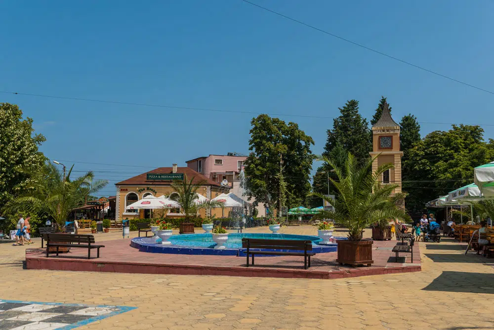 Prejdite sa po rezorte. Choďte po meste. Odporúčame najjednoduchšiu cestu. Začína sa pred hotelom RIU Helios Paradise a smeruje k parku pri vstupe do centra mesta. Nájdete tu aj niekoľko ihrísk pre deti, konské povozy a množstvo barov a reštaurácií. Pokračujte smerom k stredisku Obzor. Obdivujte námestie v strede a tam postavenú vysokú vežu, potom choďte jemne dole smerom k pláži, kým sa nedostanete na pobrežie. Prejdite sa a užívajte si morský vánok. Keď sa vydáte smerom na juh od rezortu, opäť si všimnete, že dav začína miznúť. Môžete sa zastaviť na džús alebo kávu v jednom z barov na pláži.