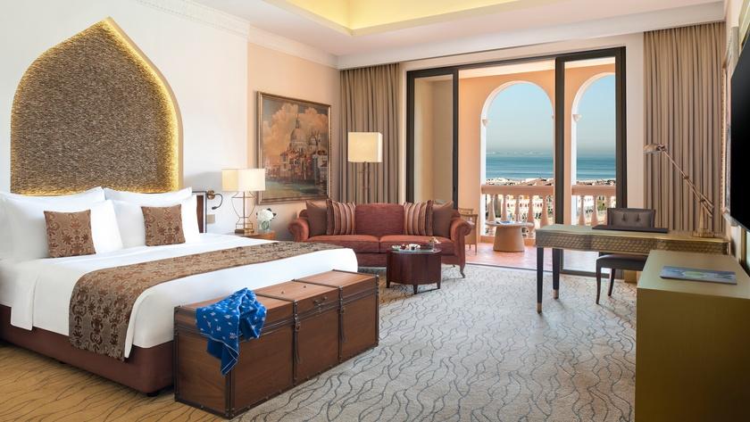 Honosné, prepracované izby, všetky majú buď vlastný balkón alebo terasu a výhľad na panorámu The Pearl alebo Arabský záliv. Dokonca aj tie najmenšie izby sú veľkoryso veľké, s pohovkou a posedením, zatiaľ čo vyhľadávané Panoramic Suites majú panoramatické okná od podlahy až po strop, veľkú obývaciu izbu a oddelený jedálenský kút.