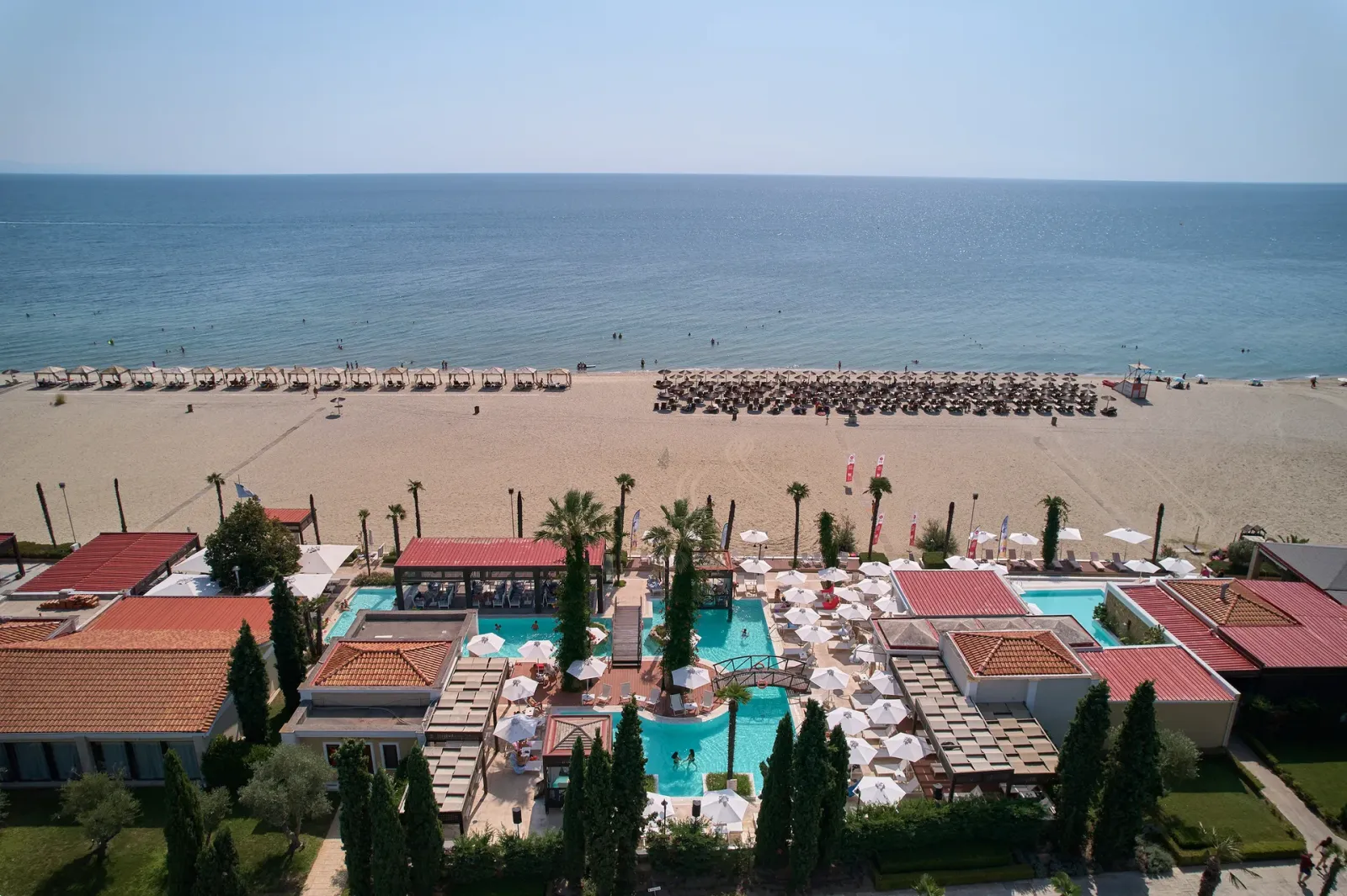 Tento báječný rezort s nerušeným výhľadom na záliv Thermaikos je obklopený sviežimi záhradami a azúrovou vodou. Oddýchnite si na pláži a vychutnajte si slnečné lúče vo VIP kiosku. Zúčastnite sa množstva vzrušujúcich vodných športov od vodného lyžovania po wakeboarding a všetko medzi tým. Oddýchnite si pri vonkajšom bazéne alebo si vychutnajte tropické koktaily v plážovom bare. A keď je čas na relax, utekajte do pokojných kúpeľov na rozmaznávajúcu masáž alebo wellness procedúru.