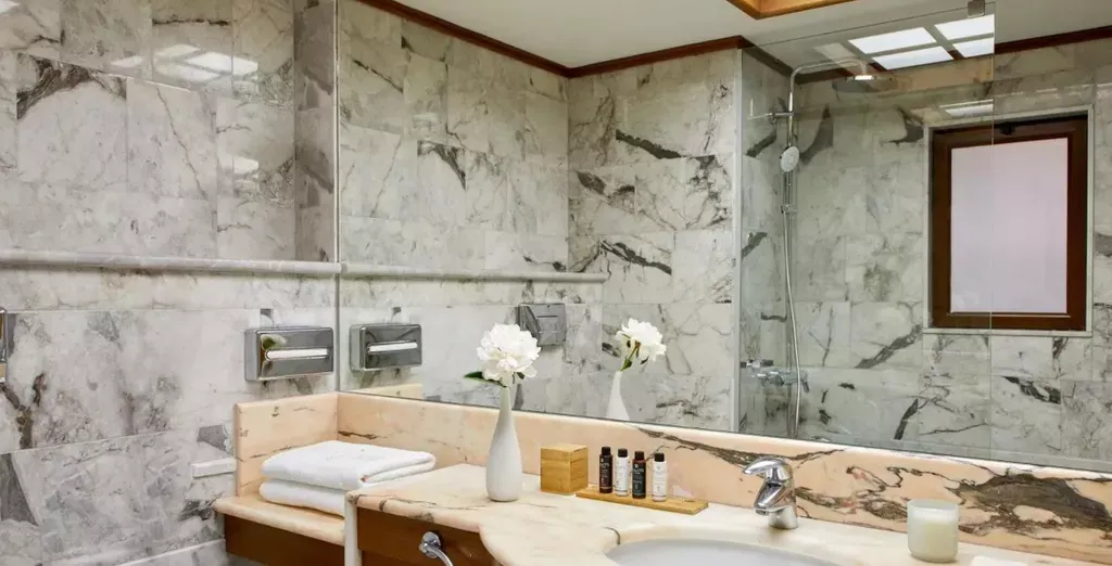 Ak je vaším cieľom úplná relaxácia, vyberte sa do luxusných hotelových kúpeľov. Má saunu, parný kúpeľ, dve jacuzzi, vyhrievaný krytý bazén a tradičný turecký hammam, ktorý vás udrží v stave blaženosti. K dispozícii je tiež miestnosť na procedúry, ktorá sa môže pochváliť rozsiahlou ponukou procedúr od hlavy až po päty, a plne vybavená posilňovňa, ktorá je tiež klimatizovaná pre vaše úplné pohodlie.