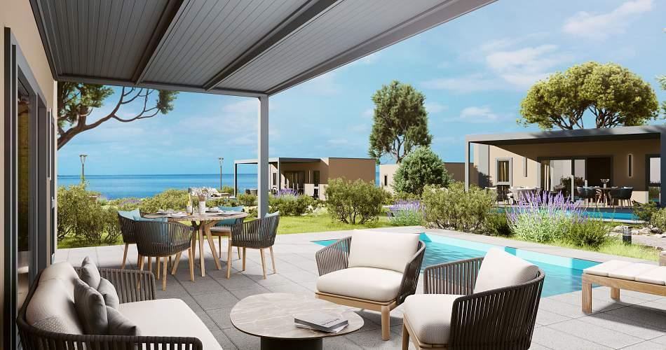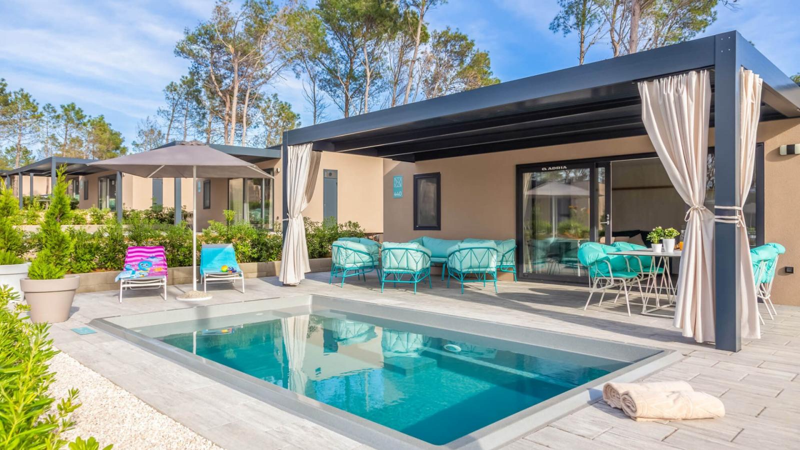 Premium Holiday Home 4+2 (33 m2, 2 spálne - jedna s manželskou posteľou a druhá s dvomi oddelenými lôžkami) • Family Premium Holiday Home 6+2 (33 m2, 3 spálne - jedna s manželskou posteľou a dve s dvomi oddelenými lôžkami) • Luxury Holiday Home with pool 4+2 (40 m2, 2 spálne - jedna s manželskou posteľou a druhá s dvomi oddelenými lôžkami, súkromný bazén)