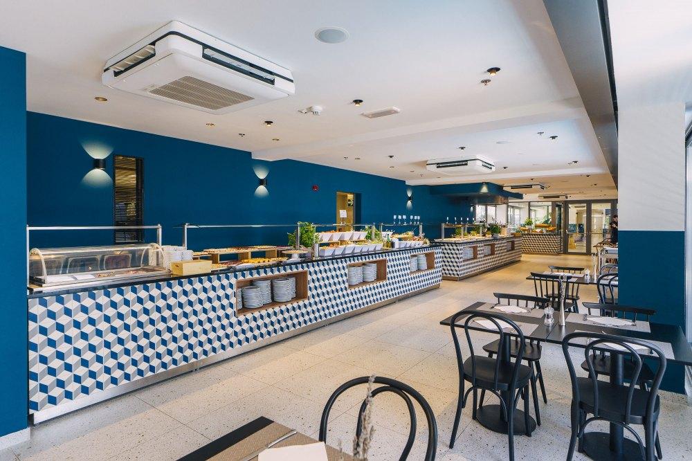Hotelová reštaurácia má výhodnú polohu priamo pri pláži a zaberá celé prvé poschodie hlavnej budovy. Hostia si môžu vychutnať priestranné vnútorné stolovanie alebo relaxovať na jednej z dvoch terás, z ktorých každá ponúka úžasný výhľad na more. V reštaurácii sa na raňajky, obedy a večere podáva pestrý bufet so širokým výberom jedál, ktoré uspokoja každého. Bufet zahŕňa aj výber nápojov, ako sú vína, pivá, džúsy, káva a čaj.