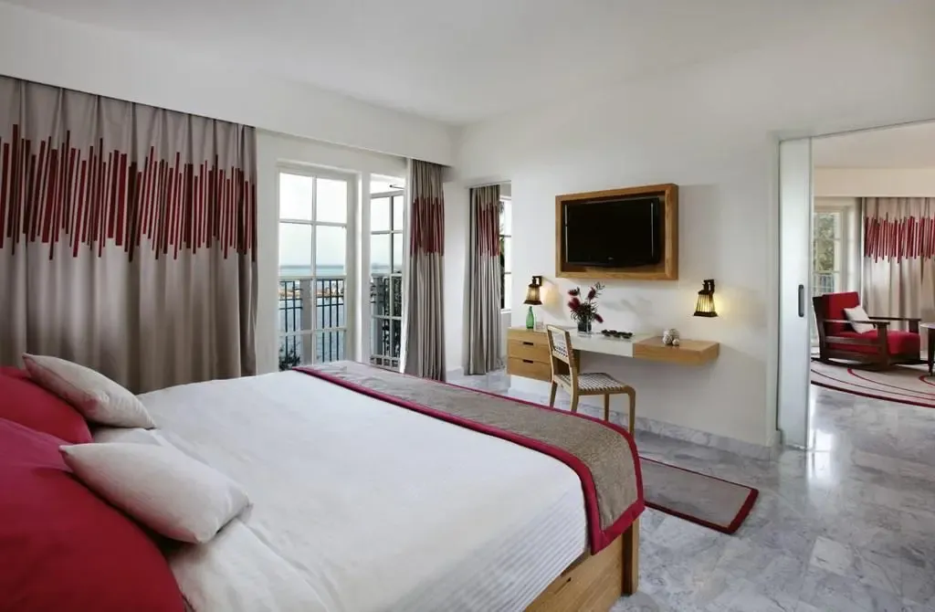 Izby rezortu Mövenpick majú veľké okná a spálne sa otvárajú na súkromný balkón s patiom. Každá z nich má satelitnú TV, priestor na posedenie a dobre zásobený minibar.