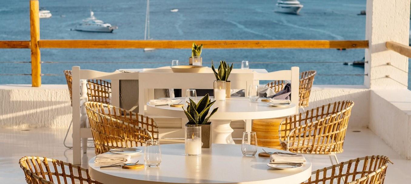 Stolovanie pod holým nebom s výhľadom na pláž a more - to je ideálne miesto, kde si môžete vychutnať súčasné morské plody a stredomorské jedlá.