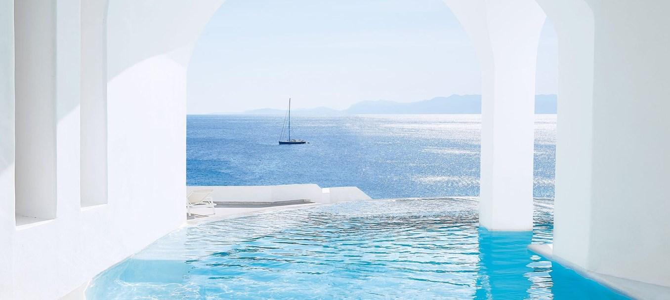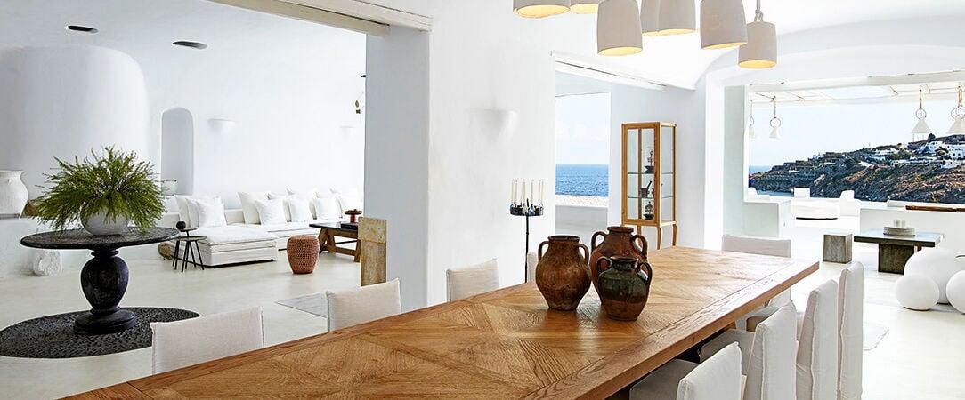 Tento luxusný príbytok s rajskou paletou modrej a bielej ponúka výhľad na azúrové vody Egejského mora a ponúka hosťom jedinečnú, pokojnú grécku dovolenku. K dispozícii je celý rad luxusných možností ubytovania a na mieste je k dispozícii medziposchodový bazén s nekonečným okrajom, ako aj lákavé reštaurácie a aktivity. Pláž Psarou so zlatým pieskom je len pár krokov od hotela, kde na vás čaká plážový bar a pohodlné ležadlá.