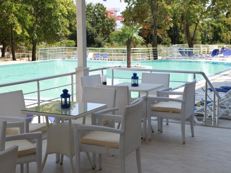 Vstupná hala s recepciou, zmenáreň, výťah, lobby bar, reštaurácia s terasou. V záhrade 2 bazény, terasa s lehátkami a slnečníkmi zdarma, osušky za kauciu, bar pri bazéne.