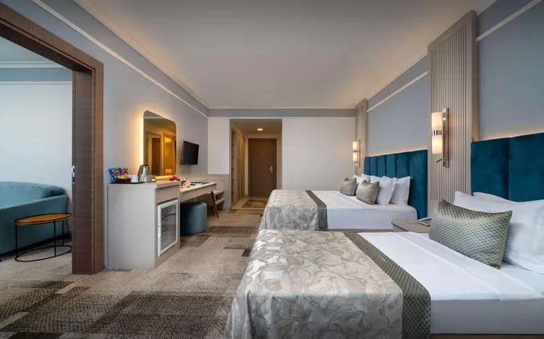 Každá z izieb je vybavená klimatizáciou, obývacou izbou a kúpeľňou. Väčšina izieb má balkón s výhľadom na zábavu hostí. Väčšina ubytovacích jednotiek ponúka bočný výhľad na more. Izby s kobercom sú vybavené manželskou posteľou alebo rozkladacou pohovkou. Pre mladších hostí sú k dispozícii detské postieľky. K dispozícii je aj trezor a minibar. Minichladnička a príslušenstvo na prípravu kávy/čaju zaisťujú pohodlný pobyt. Prístup k internetu, telefón, TV, rádio a WiFi zvyšujú komfort dovolenky. Izby vhodné pre bezbariérový prístup je možné rezervovať. Kúpeľne sú vybavené sprchovacím kútom a vaňou. V každej kúpeľni nájdete sušič vlasov. Rezervovať si môžete aj kúpeľne s bezbariérovým prístupom. Komplex ponúka rodinné izby, nefajčiarske izby a fajčiarske izby.