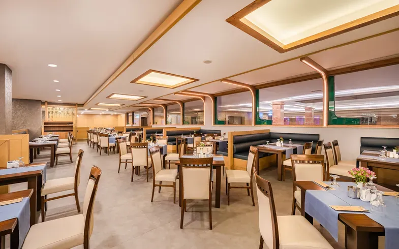V hlavnej reštaurácii sa podávajú raňajky, obedy a večere formou otvoreného bufetu s vnútorným a vonkajším posedením a špeciálnym detským bufetom, takže sa môže pohodlne najesť celá rodina. Na mieste sú tiež tri à la carte reštaurácie, v ktorých sa môžete najesť za príplatok, vrátane tureckej reštaurácie, stredomorskej reštaurácie a reštaurácie s morskými plodmi. K dispozícii je aj zmrzlina a cukráreň a vaflový dom sú počas dňa otvorené pre sladké dobroty. Na nápoje je k dispozícii široký výber barov, ktoré vás osviežia, nech ste kdekoľvek, vrátane Lobby baru, baru Nautilus, baru Antik, baru Aqua, baru pri bazéne, botanického baru, stredomorského baru a baru Disco-Shisha. Personál vám rád pripraví aj vegetariánske jedlá.