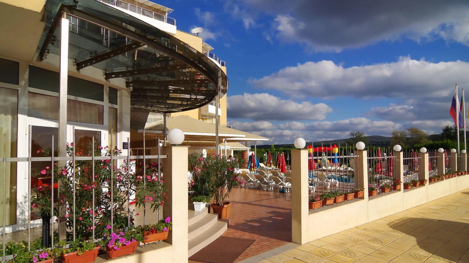 V pokojnejšej severnej časti letoviska Primorsko, cca 800 m od centra, cca 200 m od piesočnatej pláže s pozvoľným vstupom do mora a cca 65 km od medzinárodného letiska Burgas.