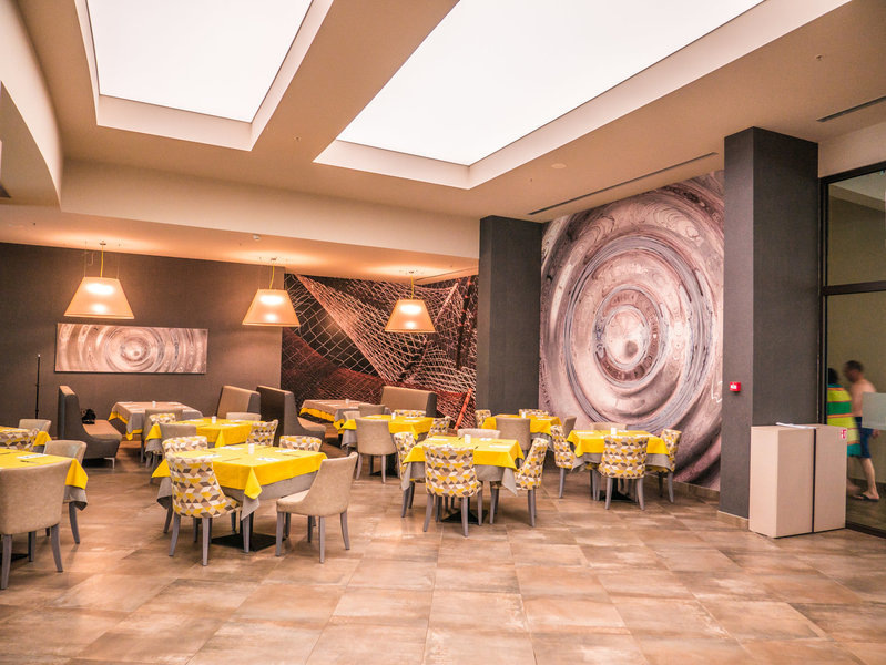 V hlavnej reštaurácii, ktorá sa rozprestiera na ploche 750 m2, si hostia užijú štýlovú atmosféru a chutnú bulharskú a medzinárodnú kuchyňu vrátane detského bufetu, vegetariánskych a vegánskych možností.