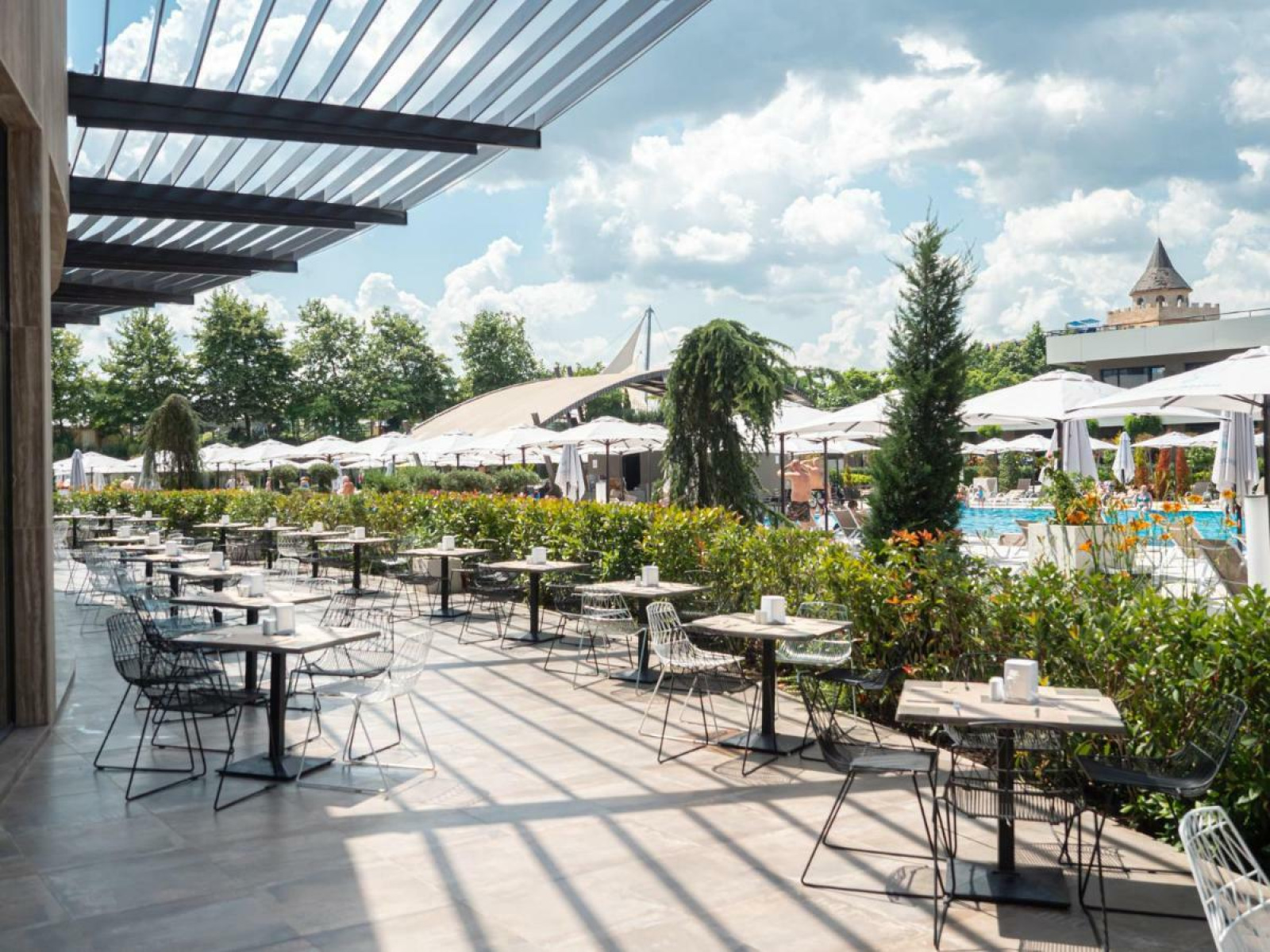 Štyri celodenne slnečné vonkajšie bazény sú v pároch (pre dospelých a deti) a nachádzajú sa v každom z dvoch zelených dvorov medzi hlavnou a vedľajšou hotelovou budovou. Hostia si môžu vybrať podľa svojich preferencií – rekreačnú zónu, kde si môžu oddýchnuť a užiť si oddych, alebo aktívnu zónu, kde ich bude baviť náš animačný tím.