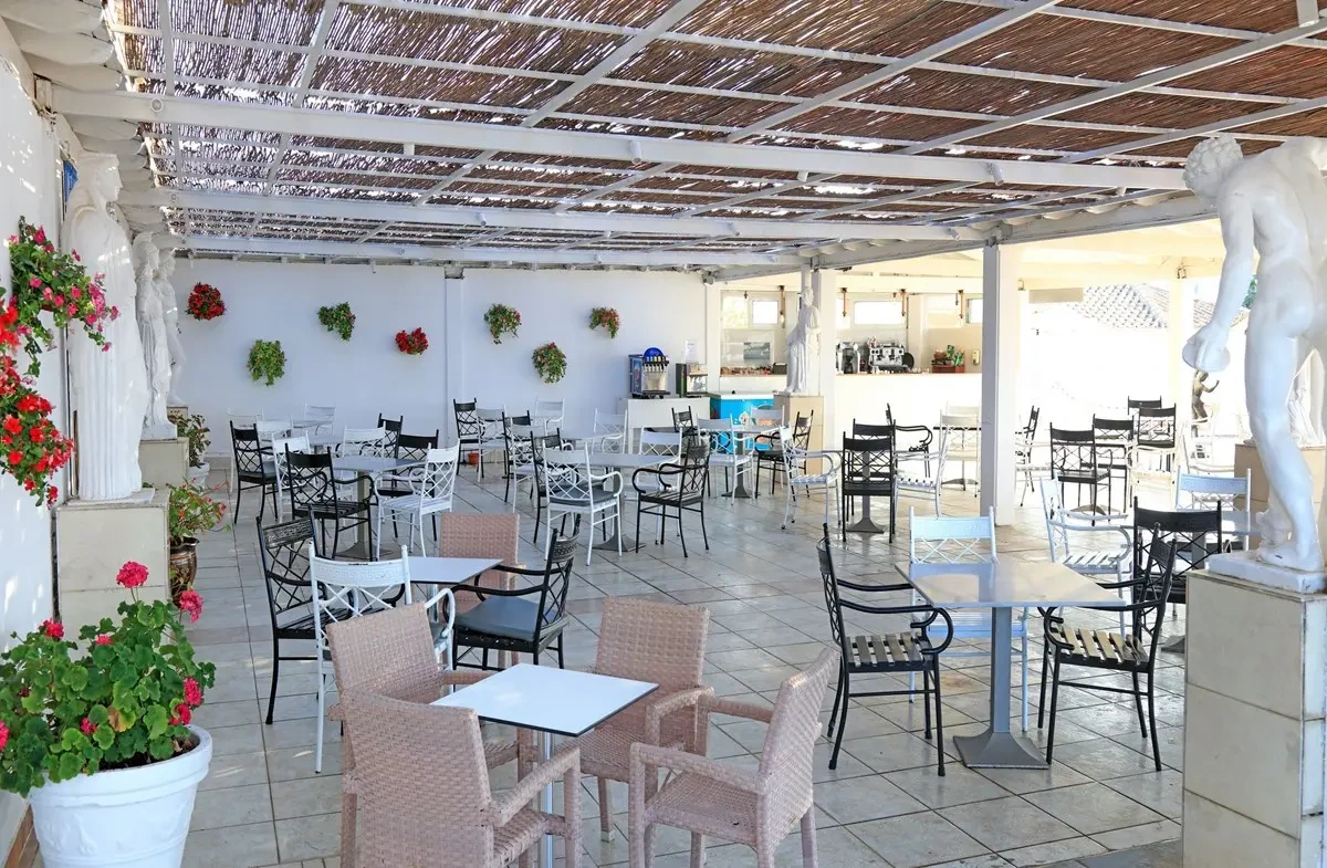 v letovisku Agios Georgios Argyrades na juhozápadnom pobreží ostrova Korfu • priamo pri širokej piesočnatej pláži s pozvoľným vstupom do mora • slnečníky a ležadlá na pláži (zdarma) • približne 25 km od hlavného mesta Kerkyra a letiska