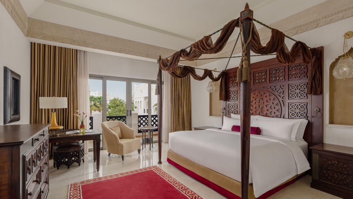 Izby a suity sú zariadené v rozprávkových arabských interiéroch s úžasným výhľadom z balkóna alebo terasy. Milujeme najmä suity, pretože ponúkajú útulnú obývaciu izbu na oddych. Krásne prvky zahŕňajú postele s baldachýnom, okná od podlahy až po strop, súkromný balkón s výhľadom na rezort, more alebo bazén a mramorové kúpeľne so sprchovacím kútom a vaňou.