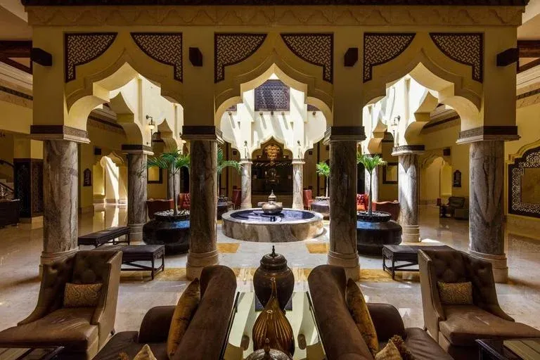 Sharq Village & Spa je inšpirovaný celým bohatstvom arabského paláca s množstvom mramoru, labyrintovými nádvoriami a tradičnou blízkovýchodnou architektúrou.