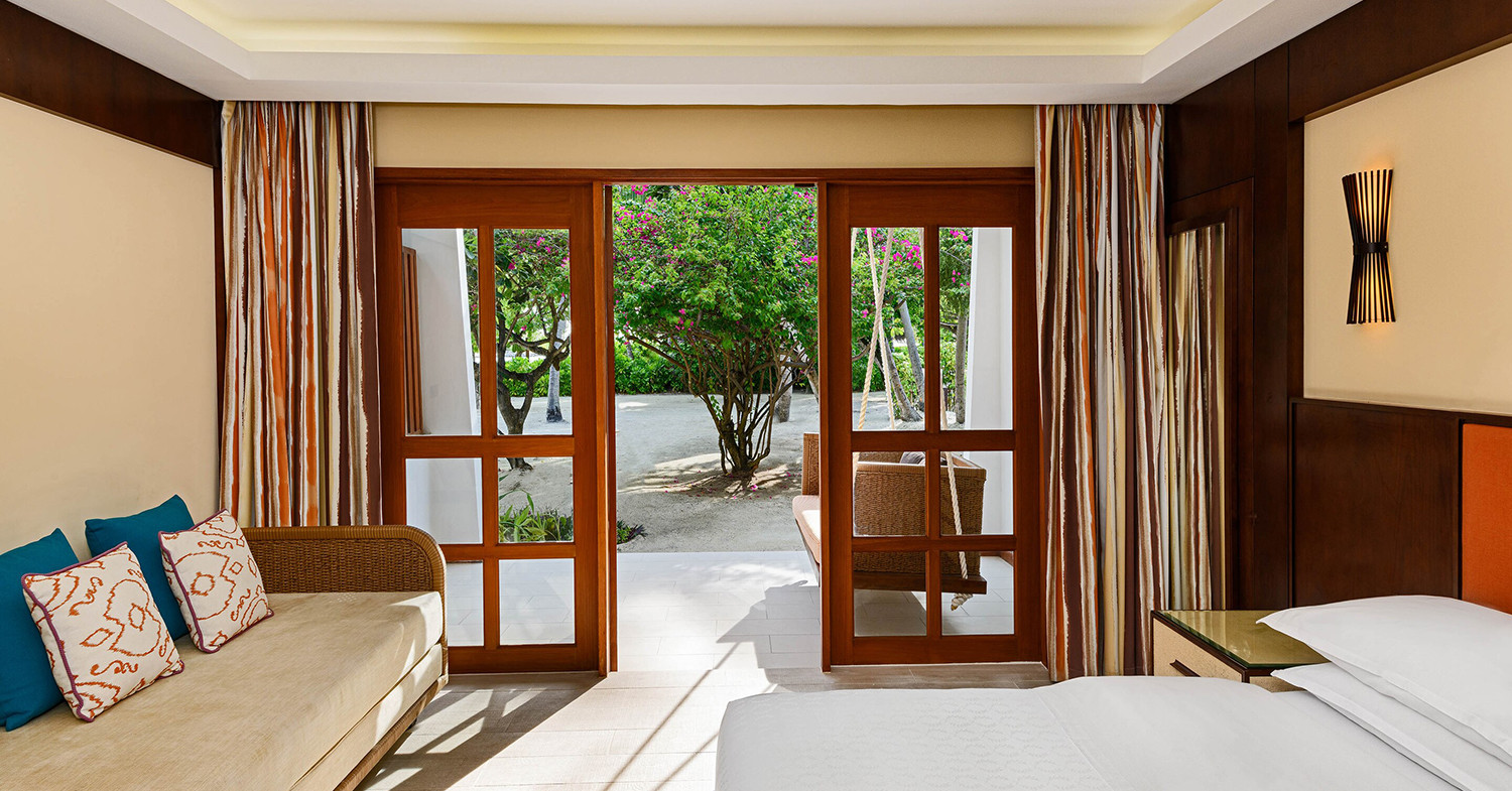 Ak máte záujem o rustikálnejší pobyt so šarmom, Sheraton Maldives vám môže ponúknuť túto rozkošnú možnosť útočiska priamo pred šumivou lagúnovou vodou. Tieto chaty so strechou zo slamy s ľahkým prístupom na pláž sú rozmiestnené pozdĺž pobrežia lemovaného palmami. Majú súkromnú terasu s pohodlným oddychovým zariadením, ktoré páry považujú za najromantickejšie.