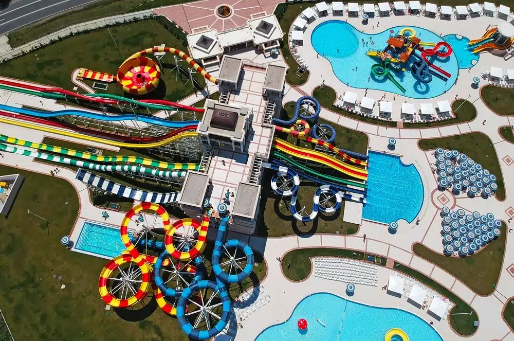 Vodný park sa nachádza v bezprostrednej blízkosti rovnomenného rezortu a môže sa pochváliť množstvom vodných atrakcií, z ktorých je len 38 toboganov. Už to znie lákavo, však?