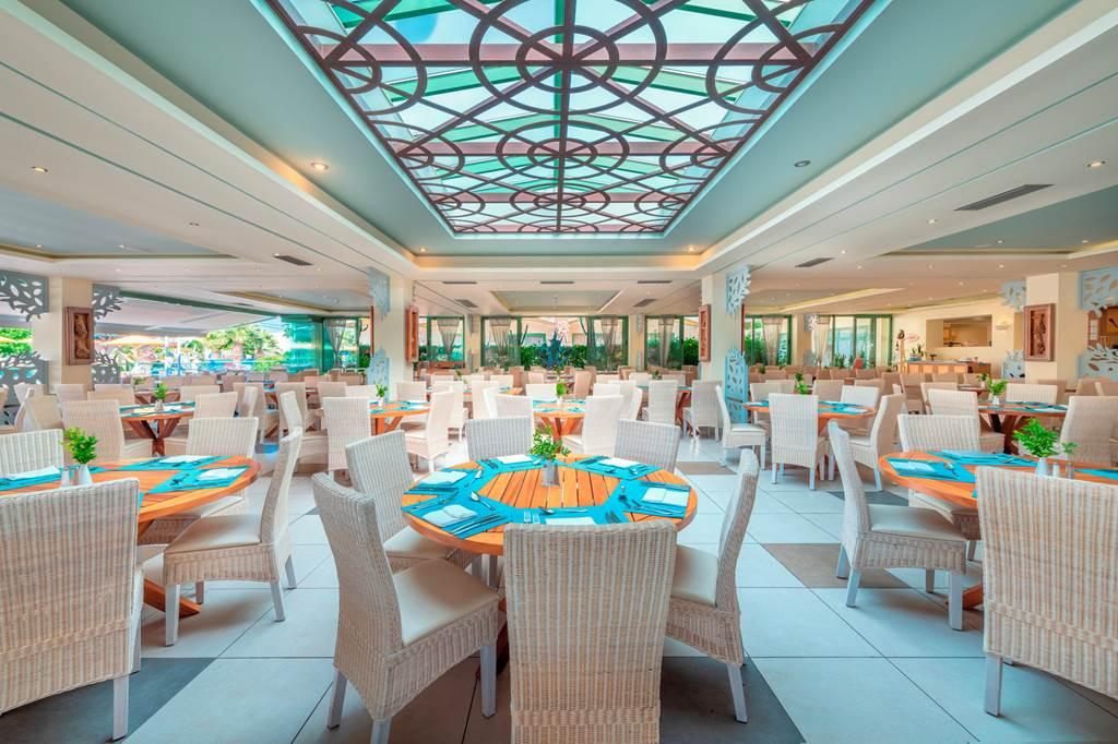 Hlavná reštaurácia ponúka posedenie vo vnútri aj vonku. Vyberte si z rozsiahleho bufetu, ktorý sa môže pochváliť aj show cooking . Večer je na každý deň v týždni iná téma – talianska, grécka, stredomorská, indická, mexická, európska a krétska. Taverna v rámci vodného parku ponúka aj obedy a večere formou bufetu. Každý týždeň sú tu na programe grilovačky a večery s morskými plodmi. Ak máte radi orientálne jedlá, potom si nenechajte ujsť Asian Star, ktorá je otvorená vo večerných hodinách.