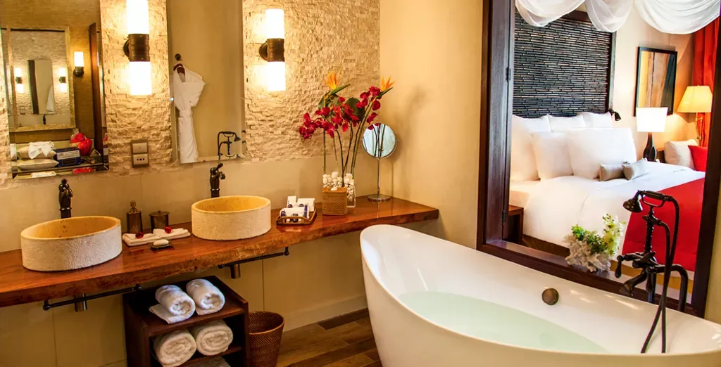Tieto suity na prvom a druhom poschodí so zariadeným balkónom alebo terasou sú obklopené sviežimi rastlinami a dobre upravenými trávnikmi. Všetky suity Junior sú klimatizované s príjemným obývacím priestorom, ktorý vedie na balkón alebo terasu. Kúpeľne majú luxusnú dažďovú sprchu a samostatnú voľne stojacu vaňu, ktorá je ideálna na kúpanie po dni strávenom na pláži.