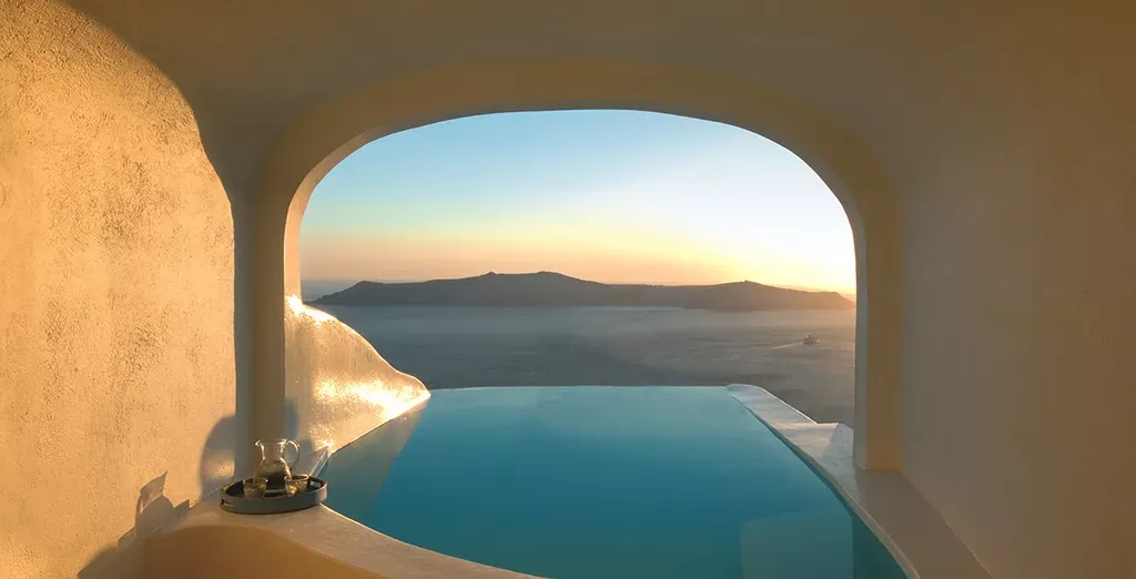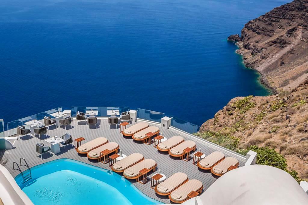 Sun Rocks Hotel, vytesaný do strán sopečného útesu s úžasným výhľadom na kalderu, je skutočne romantickým hotelom len pre páry, ktorý sa leskne na teplom stredomorskom slnku rovnako ako hlboké modré more, ktoré leží 300 metrov pod ním. Vychutnajte si úžasný bazén a bar na útese, masážne služby, dobré jedlo a ochutnávky vín.
