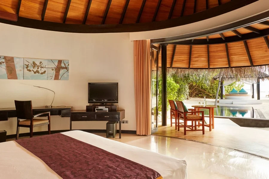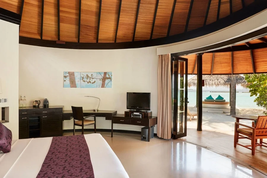 Tieto plážové vily so slamenou strechou s rozlohou 125 metrov štvorcových majú spálňu s manželskou posteľou, súkromnú kúpeľňu s vaňou i-spa a dažďovou sprchou, súkromnú terasu a dennú posteľ. K vybaveniu patrí: bezplatné Wi-Fi pripojenie na internet, klimatizácia, zvukový systém Bose, výber vankúšov, súkromný bar, príslušenstvo na prípravu čaju a kávy, luxusné toaletné potreby Thalgo, TV, denné upratovanie a denné rozostlanie postele so sladkými pochúťkami.