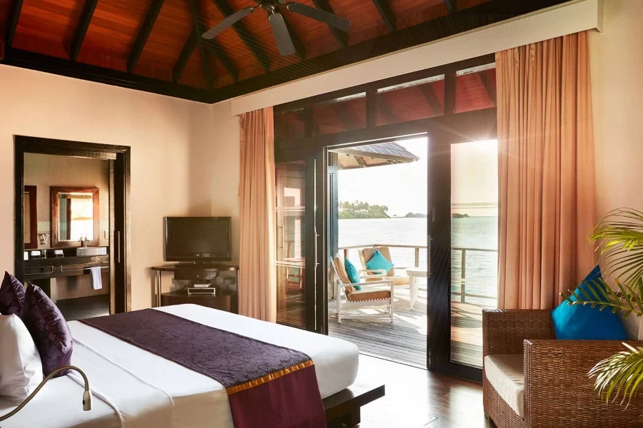 Tieto vily s rozlohou 90 metrov štvorcových ponúkajú ideálne miesto na sledovanie západu slnka z vašej súkromnej vonkajšej terasy. K dispozícii je spálňa s manželskou posteľou a sklenenou podlahou, súkromná kúpeľňa s vaňou i-spa a dažďovou sprchou a súkromná vonkajšia terasa s vírivkou, ktorá sa rozprestiera nad lagúnou. K vybaveniu patrí: bezplatné Wi-Fi pripojenie na internet, klimatizácia, výber vankúšov, súkromný bar, príslušenstvo na prípravu čaju a kávy, luxusné toaletné potreby Thalgo, TV, denné upratovanie a denná služba rozostlania postele so sladkými pochúťkami.
