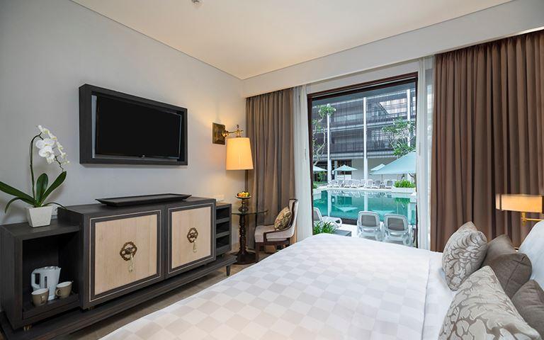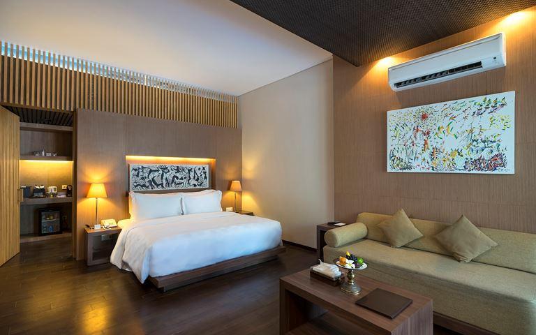 Hostia, ktorí vykročia z pokojného prostredia hotela priamo do srdca Kuty, nájdu rušné obchody, vodné športy, miestne atrakcie a nočný život priamo na dosah ruky. Luxus tohto 5-hviezdičkového rezortu umocňuje hotel, ktorý ponúka indonézsku kuchyňu v reštaurácii Kunyit a medzinárodnú kuchyňu v reštaurácii Sands. Medzitým hotelové kúpele Sakanti Spa ponúkajú tradičné balijské procedúry, ktoré sú známe po celom svete, na podporu pohody hostí.