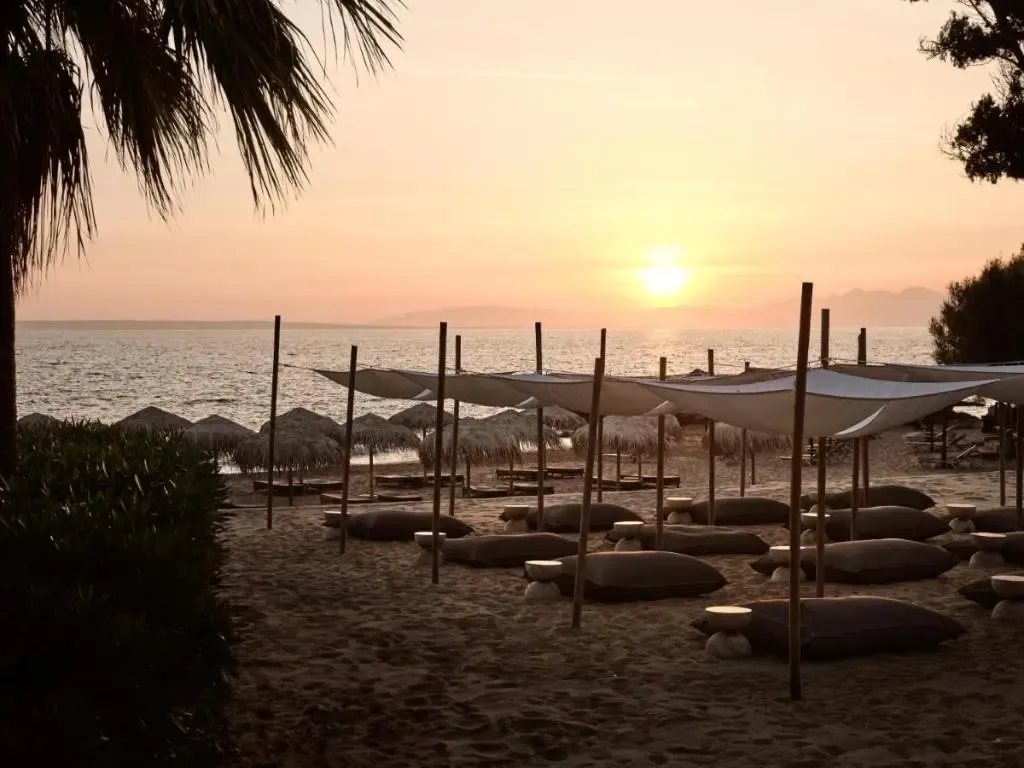 Súkromná piesočnatá pláž s pozvoľným vstupom do vody sa nachádza priamo pri hotelovom komplexe; ležadlá a slnečníky na pláži sú zadarmo.